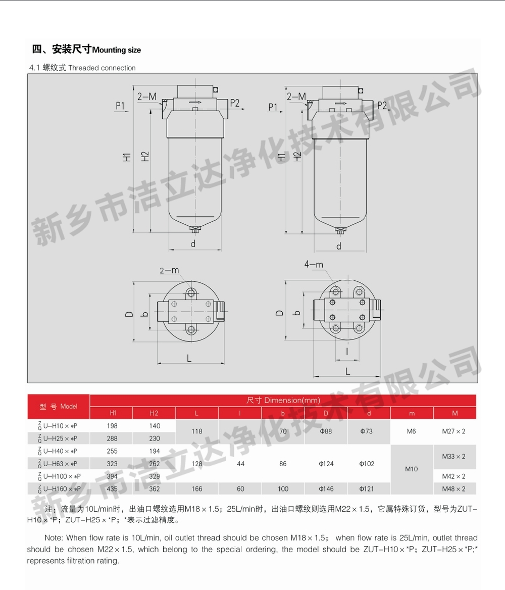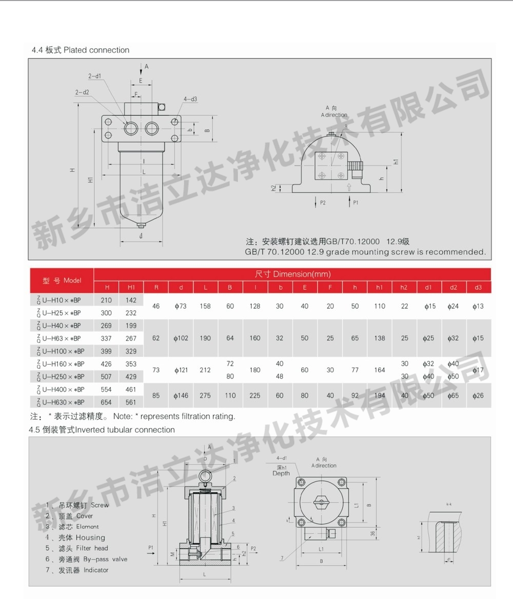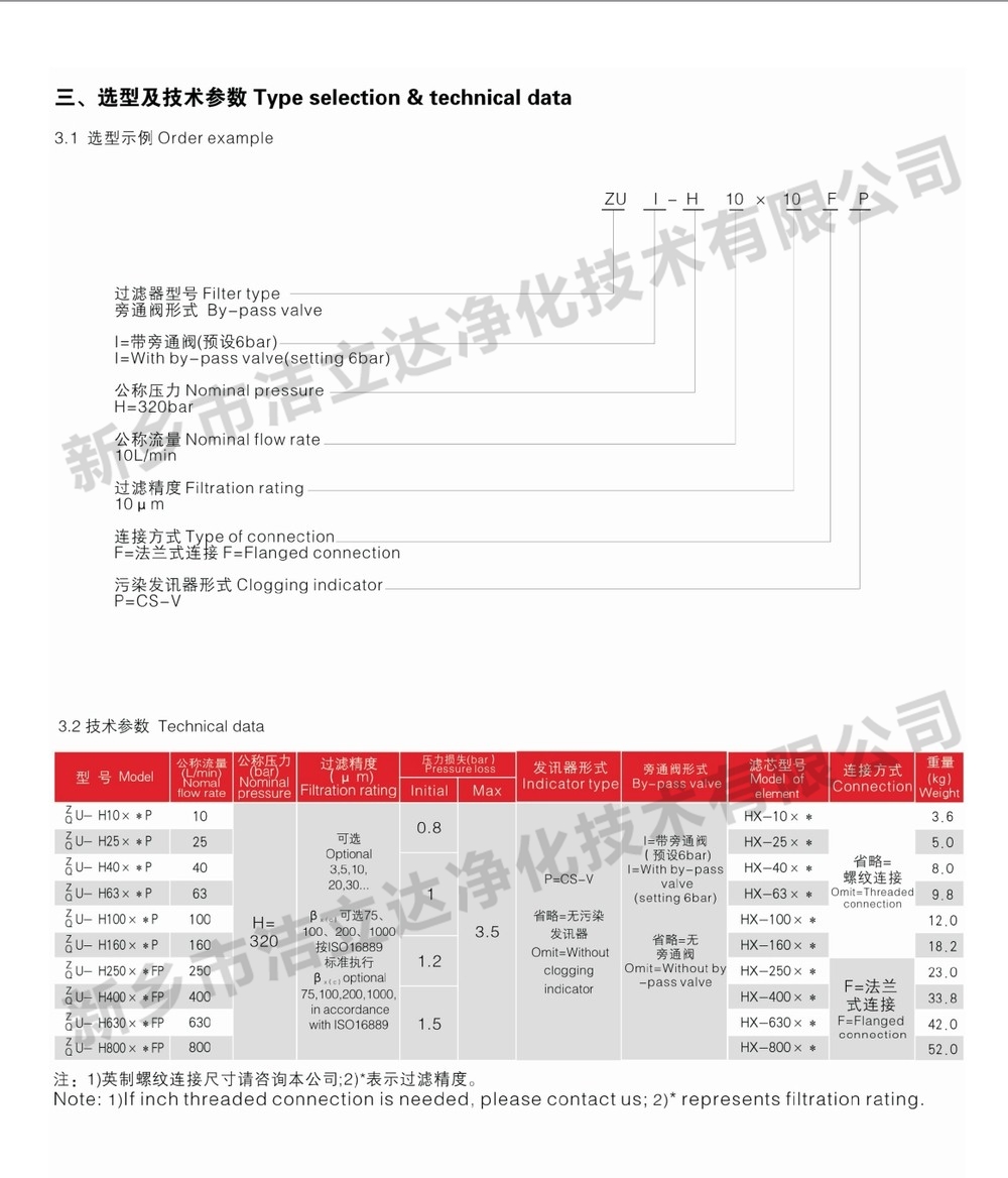 ZU-H、QU-H系列压力管路过滤器