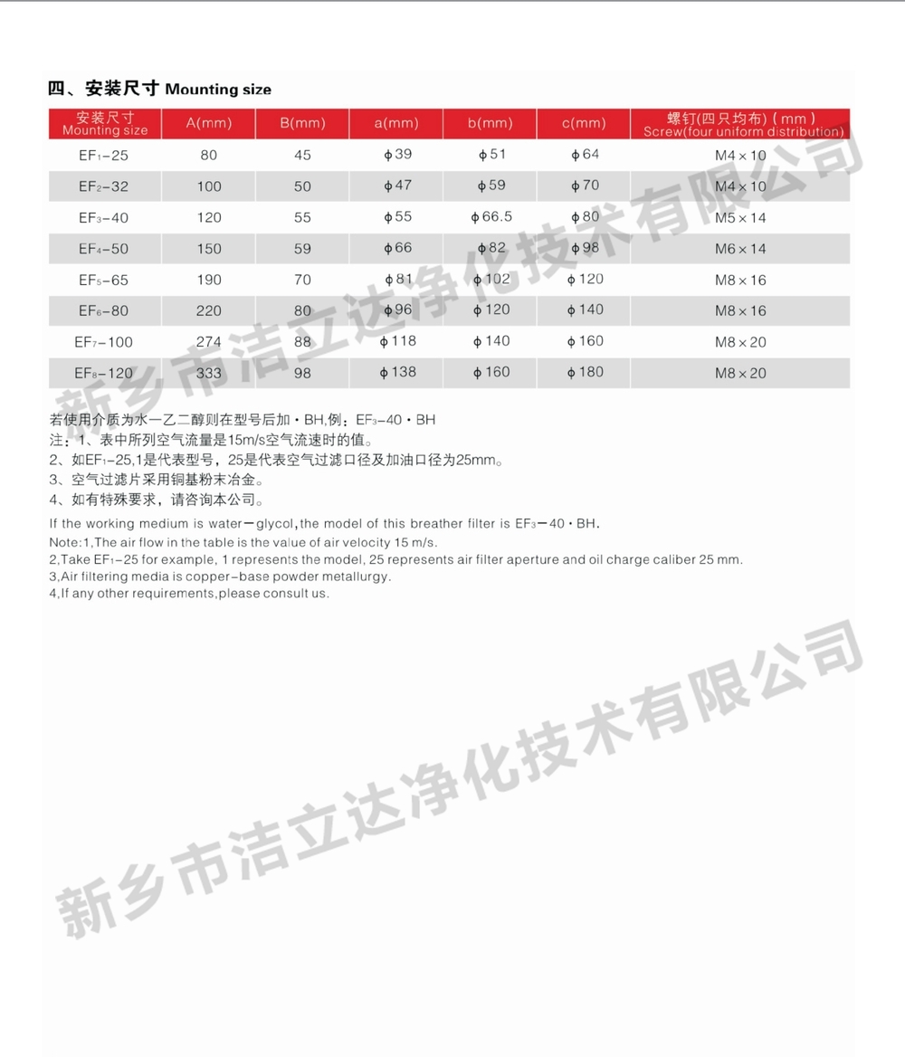 EF-15~120系列液压空气滤清器